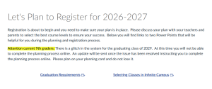 Another important resource is the academic planner on Infinite Campus, which has been fixed for all grade levels as of February 19th.